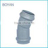 Chinese Manufacturer Plastic Pipe Fitting ZheJiang Pvc Grey Two Faucet 22.5 Degree Elbow