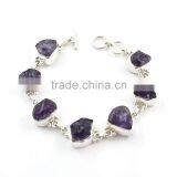 925 Sterling Silver Jewelry Amethyst Rough Stone Bracelet Fashion Jewelry Vintage Jewelry