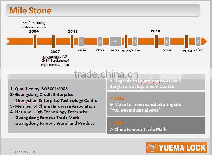 Founded in 1992, with an industry plant of 80,000 Sq meter. YUEMA LOCK is one of the top 5 hardware products manufacturer in China. We have more than 1600 employees, including 62 experts in QC. YUEMA LOCK products have been exported to over 50 countries and regions. Our main oversea markets are North and South America, Southeast Asia, Africa and Europe.