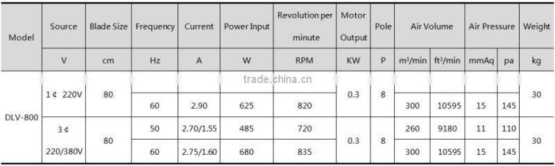 DLV-800 Series Poultry House Greenhouse Ventilation Exhaust Fan for Poultry/industrial