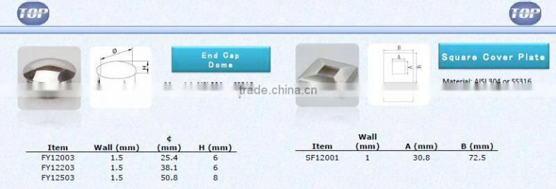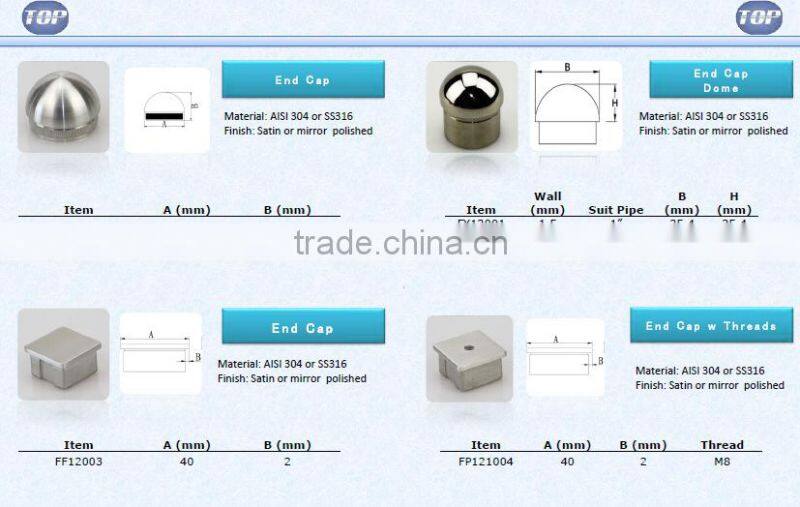 Stainless steel handrail balustrade tube dome end cap knock in end cap :
