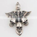 Three Skulls & Wing Fashion Silver Jewelry From Yiwu Manufacturer, Endurable Quality