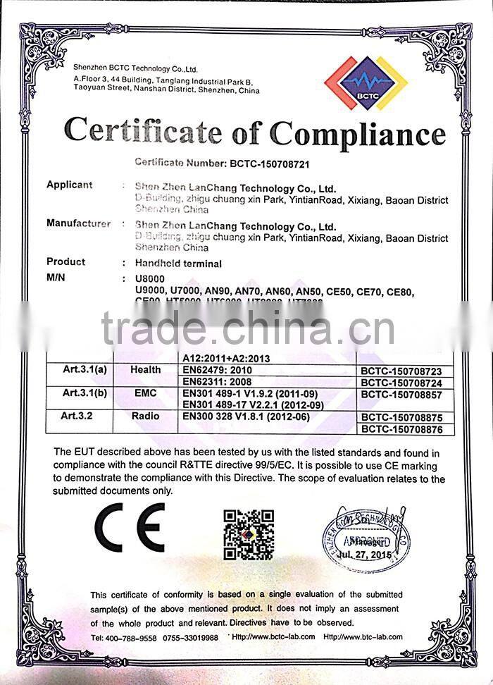 | MOQ:1pc Handheld Terminal Payment Terms: T/T, Western Union and paypal Delivery Time: Within 30 days after receive 30% deposit. Packing: Retail Box + Export Carton, 1 pc in a inner carton, 20 pcs into a out Inner packing: 25.5*25.8*5.8 cm, G.W: 1kg Outer carton: 57*59*28 cm, G.W: 21 kg Accessory: 1 PDA + 1 adapter + 1 USB cable + 1 battery + 1base+ 1 touch pen Shipping: 1. By Express: We deliver goods by DHL or UPS with door to door service, normally it will take 5-6 days to delivery 2. By Air : It will take 5-6 days to delivery, customer can pick up goods from airport by airway bill 3. By Sea: If you want, we can also arrange delivery by sea to main ports of worldwide from Shenzhen. delivery time will be 20-40 days accordingly. |