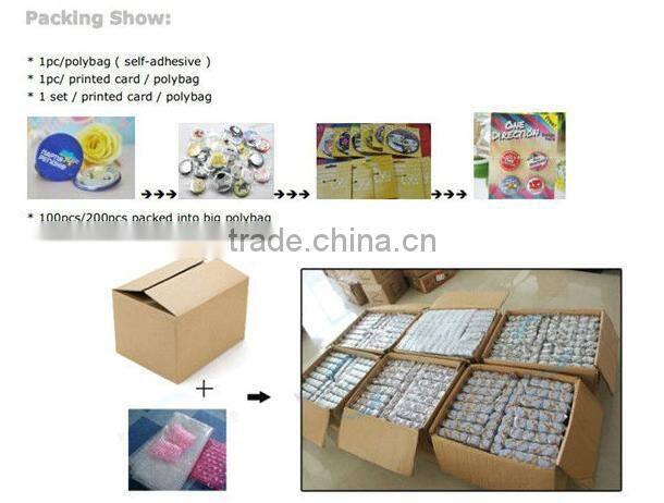 1.Item:mirror tin button badge2.Material:artpaper+tin+glass