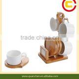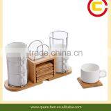 Cup Set With Bamboo Holder &coaster