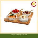 Four-bowl Square Bamboo Serving Platter for Picnic