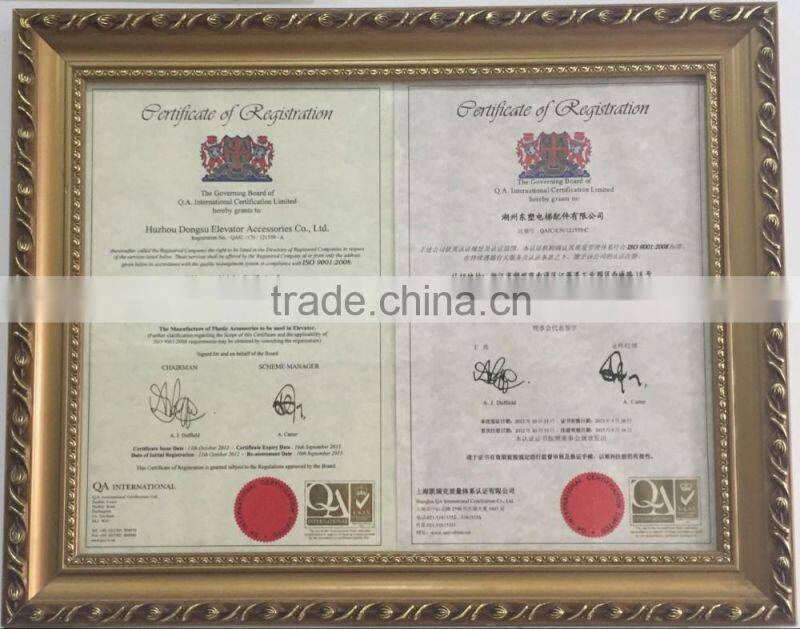 Located in one of ten ancient towns Nanxun in Huzhou City Zhejiang Province China, Huzhou Dongsu Elevator Accessories Co., Ltd. is a professional manufacture of elevator accessories integrating manufacturing and sales together. Our company was founded in 2009 with advanced injection molding machines, extruders and all kinds of auxiliary machines. The main products are, elevator oil cans, elevator shaft door accessories, elevator shaft accessories, escalator accessories, compensating chain and its accessories, etc.. Under the scientific and standard management, our company has attained IOS9001: 2008 certification, and acquired a number of paten certifications.