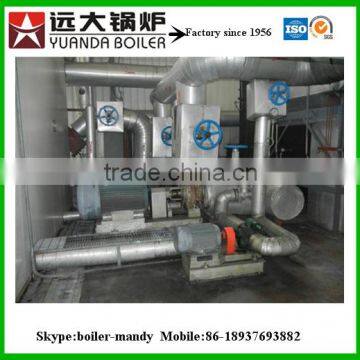 YY (Q) W series of organic heat carrier boiler is quick-fitting forced circulation fuel oil (gas) boiler, this series boiler's is compact structure, the heating area is constituted by closed coil pipes from inside, outside (or internal and external), inside coil pipes are the radiation heating surface. Fuel in inside the inner coil pipe form the combustion chamber, the fuel burn inside and release heat and absorb most of the quantity of heat after radiation heating, high temperature flue gas transfer heat through convection heating surface, then go into the air preheater (or waste heat boiler) to heat the required air (or water), the low temperature flue gas from boiler discharge directly to the chimney then to the atmosphere.