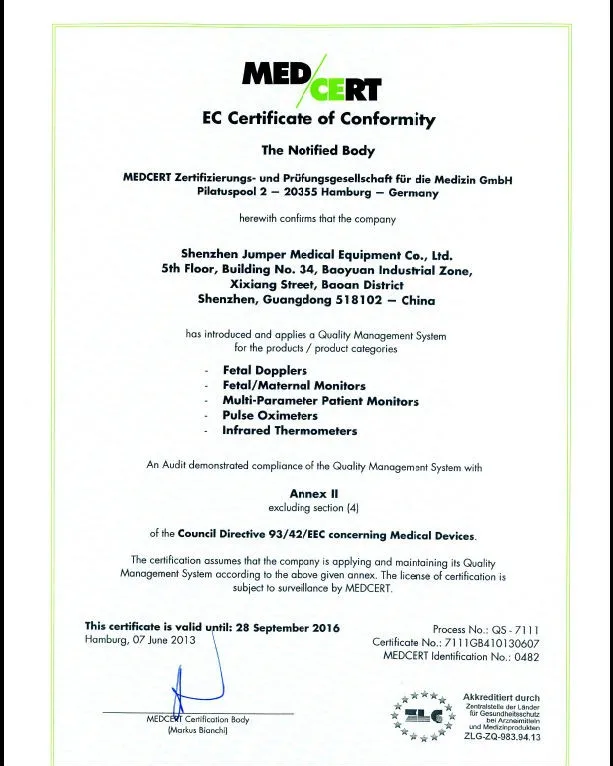 Our products include fetal Doppler, pulse oximeter, infrared thermometer, blood pressure monitor, fetal monitor/CTG machine, patient monitor, vital signs monitor| multi parameter patient monitor| bed side monitor, ECG machine, etc. Our products are ISO13485, CE, FDA proved. In order to make sure every product conforms to ROHS requirements, all raw materials used are compliant with ROHS directives and all products are produced with ROHS compliance awareness.