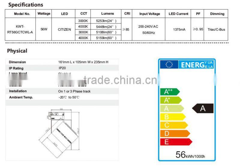 2015 China Whole Sale Dimmable Black Led Track Rail Lights High Lumen 56w Citizen Cob Led Track Light With ce Rohs Saa