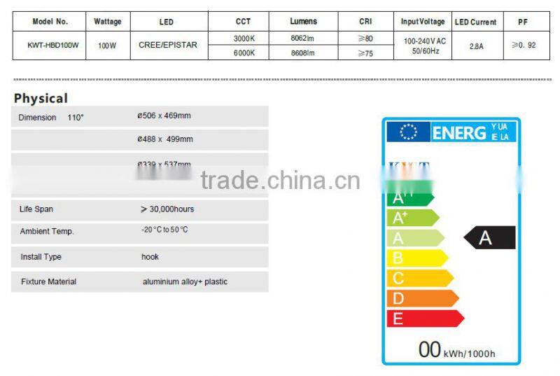High power COB 100 watt led highbay light with IP20
