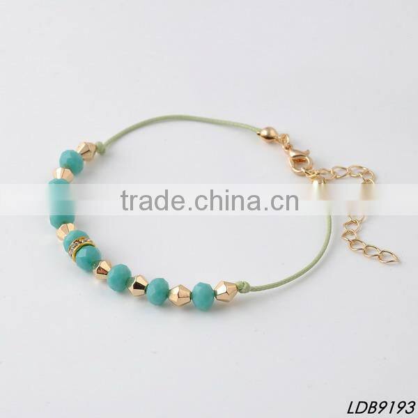 faced green glass cord bracelet