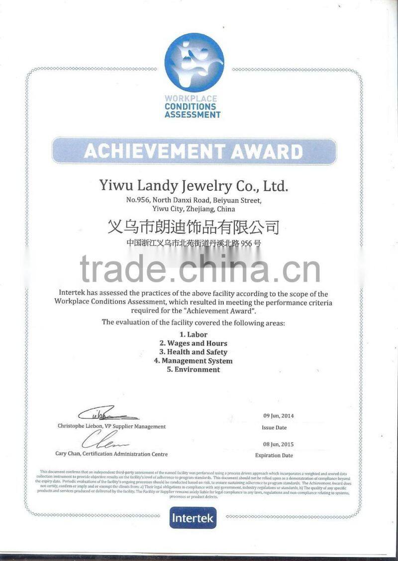 Yiwu Landy Jewelry Co., Ltd is located in Yiwu City, engaged in producing high quality fashion jewelry for customers worldwide. We have more than 9 years' experience and win a good reputation among clients.