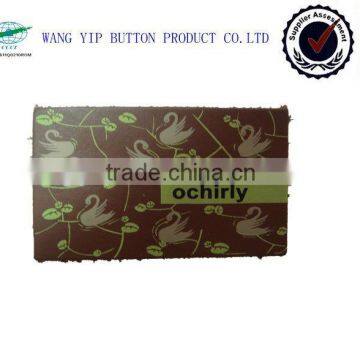 real/genuine leather, PU,TPU or craft paper that can resist garment wash |