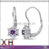 Xuan Huang Silver Jewelry Amethyst Polished Drop Flower Earrings