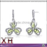 XH Silver Earrings Peridot Gemstone Clover Earrings