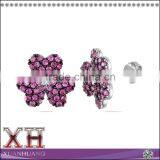 Xuan Huang Silver Jewelry Ruby Gemstone Pink Clover Stud Earrings