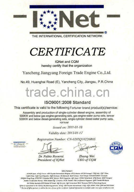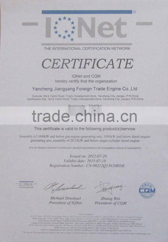 Company Introduction: Our factory owns the first-rate inspection equipment,high technology and over 20 years' experience in manfacturing diesel engine from 3hp to 33hp and various kinds of generating set, such as automatic,trailer, sound proof, from 0.5kw to 1500kw.We also supply water pump set,sprayer,alternator and spare parts related.