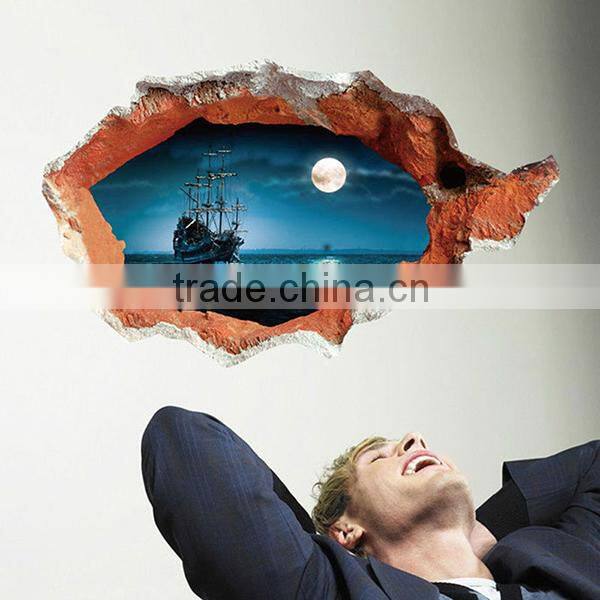 decorative wall sticker,custom Art Decal Room Wall Decor vinyl sticker,3D Sailing Broken Wall Mural Removable Wall Sticker