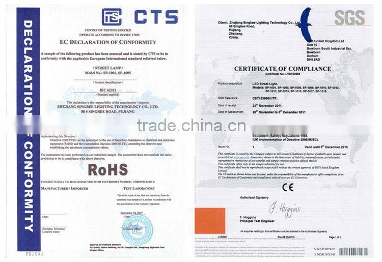 Our company SINGBEE LIGHT have been establish for more than 5 years, we have been making our lamp as well as packaging our LED. We have not only have ISO 9000 for our factory management, and over 15 QC station to ensure the product quality remain as high as possible. We have our own unique patent for our low power LED. Which is more stable and efficiency. We have a very large range of products, from LED Street Light, LED Flood Light, LED High Bay to LED Ceiling Light, LED Office Light, LED tube, LED Spotlight and LED strips. To give you a better idea about our range of product our smallest light is 3W and the highest is 250W producing around 20,000 lumens. We are positive that we will able to provide you the suitable product whatever your market need and want is. | ||||||||||||||||