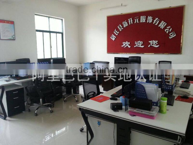 Weishi County Xinkaiyuan Garments Co., Ltd. is located in Weishi County of Henan Province , Industrial park Fu Yuan Road No. 16 ,covers an area of 20 acres, is a Hong Kong joint venture, founded in January 2009, a total investment of 30 million yuan, is a set design, production, sales and service as one of the clothing production, trade oriented modern enterprise, existing high speed computer 260 sewing machine, sewing machine 50, advanced equipment and related facilities, the existing staff of 200 people, including senior management and technical personnel more than 30 people, with Taobao, Tmall, Jingdong, Alibaba, enterprise and other 5 mall business platform, professional production of various kinds of thermal underwear, long johns underwear, T-shirt, pants and fashion. After nearly 6 years of hard work, has become a very influential brand in the province's apparel industry. Established from the procurement of raw materials, fabric production to finished product processing, from R & D and manufacturing to online and offline terminal sales, the formation of the norms of the industry chain, the offline products sold in Henan, Hebei, Shandong, Shanxi, Xinjiang, product online is throughout the country, by the user's consistent high praise.
