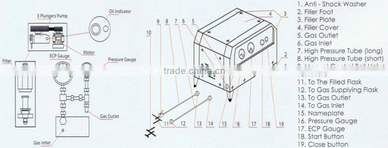 Co2 Refilling Machine is designed for filling portable Co2 fire extinguishers. It consists of a Co2 cylinder, medial pressure tank and electronic scale.