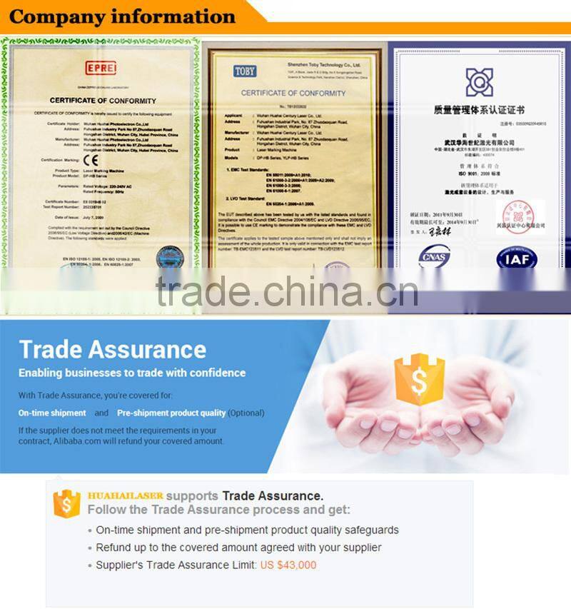 1) You can get a competitive price as we are direct selling to you. 2) We are manufacturer capable of providing after-sale services. Send us inquiry to get a equipment service clause. 3) We are CE & FDA approved factory who can supply top quality products. 4) R&D department has 10 years in supplying laser equipment, we are able to provide customized design machines. 5) We can deliver the machinery to your place. All you demands we will try our best to meet. 6) Various model for your selection: 200W 300W 400W laser welding machine 10w/20w fiber laser marking machine, laser cutting and engraving machine, 10w/30w/50w/100w co2 laser marking machine 7) We are able to provide full set solution for your application such as auto-conveyor, 2d code/serial code scanner etc. |
