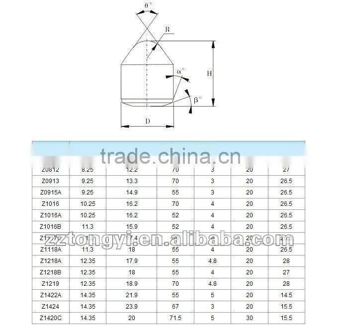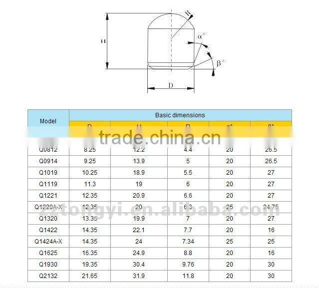 1.Our products based on ISO standard with high toughness ,wear resistance and precision. They could mining quarrying coal-cutting, road construction, snow plow etc. Recommended carbide grades are YK 20, YG 8C,YG11C, if you have any inquiry, please feel free to contact me, we will be very glad to be of your service. Samples and quotations will be offered upon receipt of your further requirement.