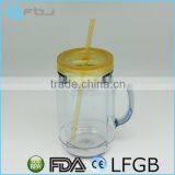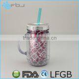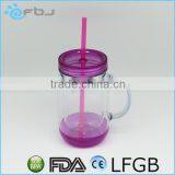 Color Clear Double Wall Plastic Mason Jar With Lid And Handle