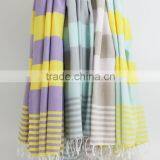 High Quality Cotton Colored Stripes Turkish Towel Peshtemal Bath Hamam Spa Gym Beach Towel Hammam Sarong Pestemal Throw Blanket