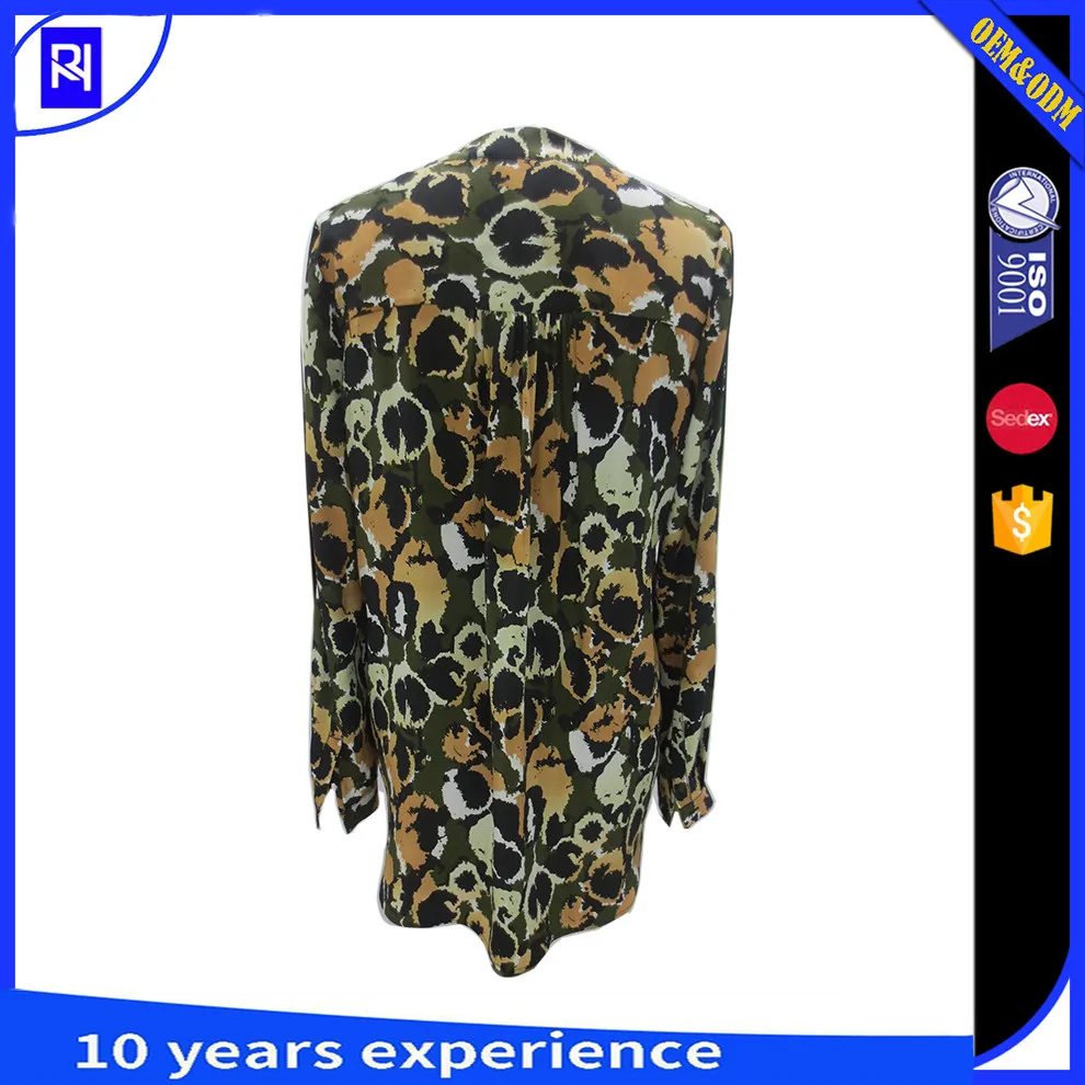 *100% silk CDC printed shirt blouse for lady's women classic long sleeve casual fit with front patch pocket