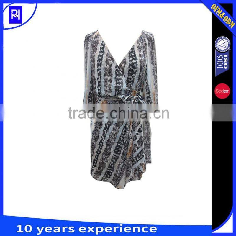 * 100% silk chiffon print wrap dress self fabric tie knee length casual women long sleeve.