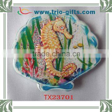 Polyresin shell shape sea horse fridge magnet