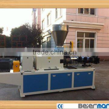 UPVC pipe extrusion machine consists of twin conical screws extruder, vacuum forming tank, haul-off unit, cutting unit, material tumbling frame, etc. twin screw extruder and haul-off unit adopt imported A/C inverter, both vacuum pump and driving motor used the first-class brand.