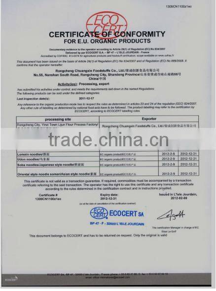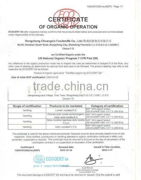 Our organic Buckwheat Noodle(pasta) is a smart choice, as there are more than 10 kinds, and comes in Round, Fine and Wide varieties. Their versatility enables the consumers to purchase one products for using, no longer to purchase different products for Western and Asian dishes. Each package of organic pasta contains three ribbontied bundles, which is very convenient to cook them according to your need.