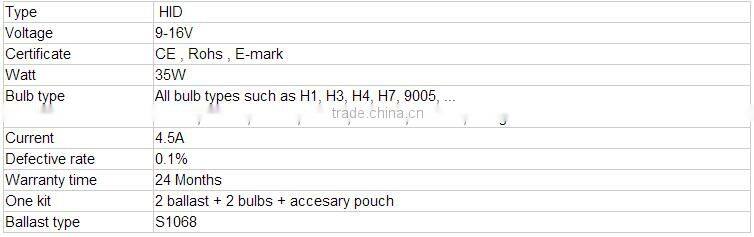 - 35W Hid Xenon Lamp Kit with 2 years warranty
