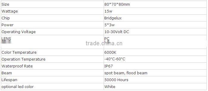 - 15W LED Work Light with 2 years warranty
