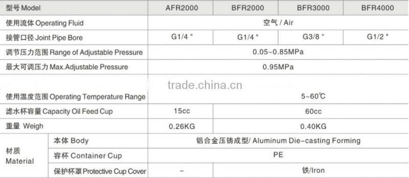air regulator and filter ,0.5~9.5kgf/cm 0.05-0.95MPa