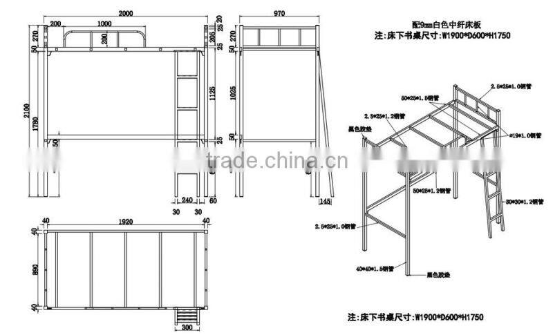 | Bed frame | Upright Tube Size : 40*40*1.5mm power coating iron Cross-Bar Size : 25*50*1.5mm power coating iron |