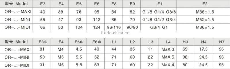 7.Port Size: Mini-1/8", 1/4", 3/8"; Midi-1/4", 3/8", 1/2", 3/4"