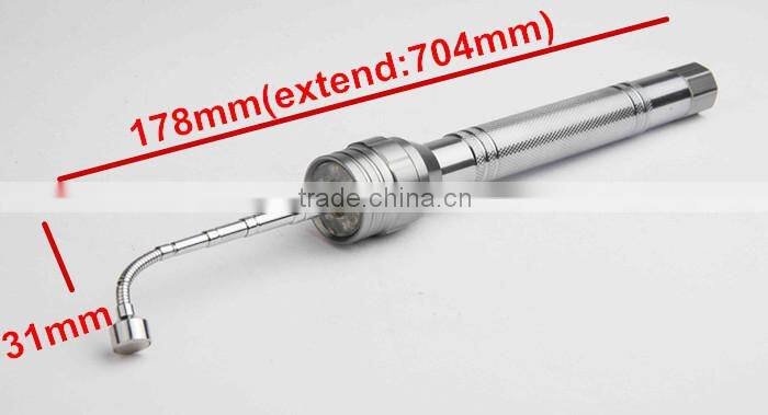 >Handy magnetic pickup tool with LED flashlight, extends from 6.5 to 21inches. Handy tool for picking up screws, nailes or other small items from the floor or tight spaces. At the front, powered by three bright LEDs, with the magnets in front for pickup items.