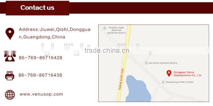 Dongguan Venus Optoelectronic Co.,Ltd have been enjoyed a good reputation form internal or overseas. We will keep going devote to high efficacy, economize,long life and environment protection LED lamp research and procreation. We will also provide even more production quality and service by advanced procreation technique, stringent quality control and brilliant after sale service.