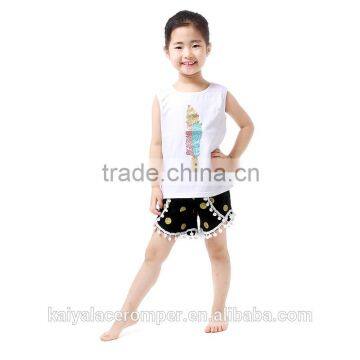 2016 Wholesale Children's Boutique Tank Top Home Wear Set Kids Clothes Set Gold Dot Shorts Baby Girl Outfit