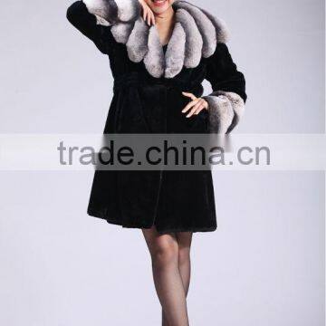 Natural Black Rex Rabbit Fur Coat With Big Chichilla Style Collar Quality Choice