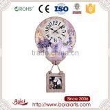 Hot-air Balloon Shaped Roses Pattern Dial and Hanging Photo Frame Mdf Wooden Wall Clock