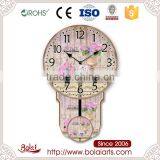 Blue Birds and Flowers Bars Imitation Wood Pattern Mdf Pendulum Wall Clock for Sale