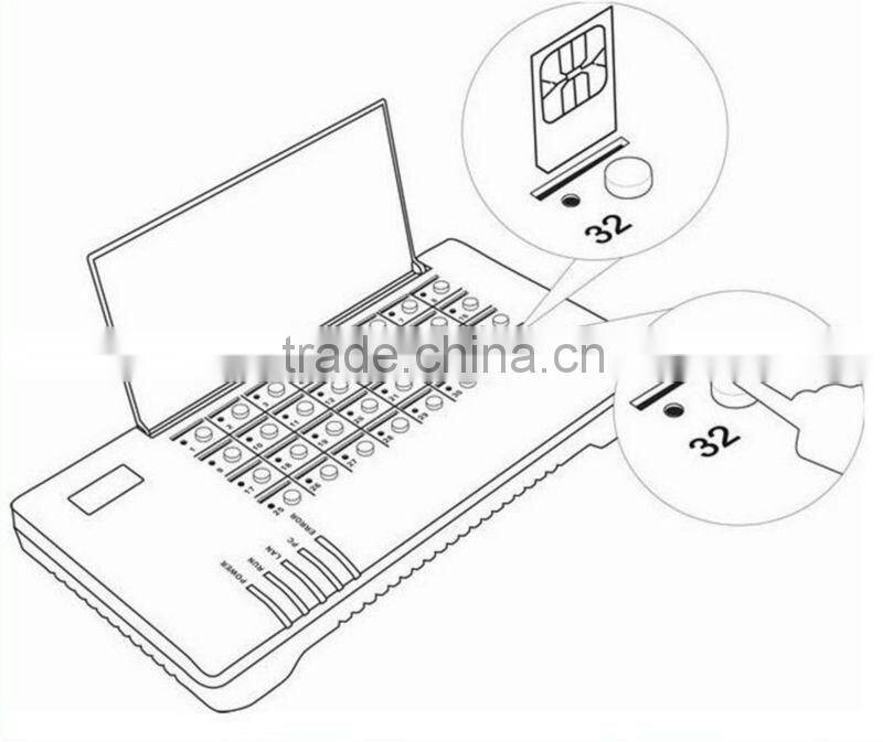 Sim bank/gsm bank/sim server termination has 32 ports for sim cards. It was designed for remote and centralized management of sim cards. It was used together with Goip gateway, through it we could make more sim card works at the same time. Through sim bank we could divided the sim card into several groups, so it will be very convenient for us to management the sim cards which is working at the same time.