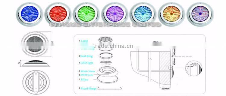 Led swimming pool light are made of high quality material: PC Cover+ Stainless steel chassis, 180PC 5050 Epistar Led