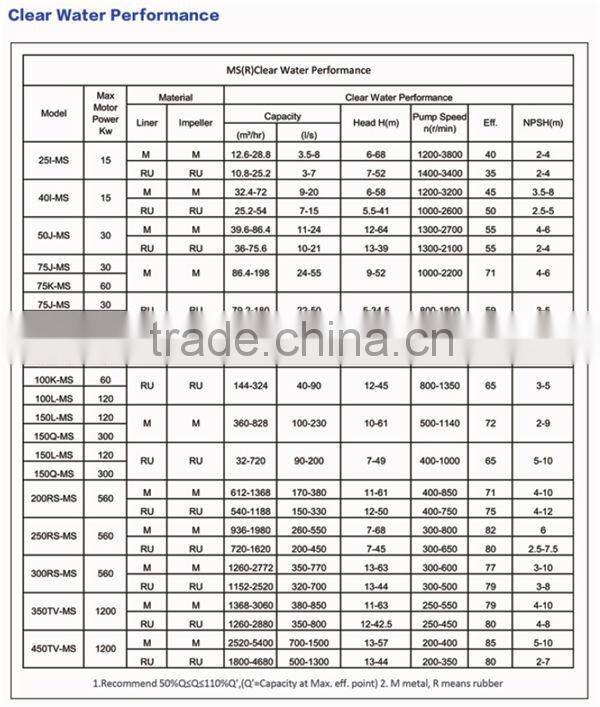 MS(R)hard metal/rubber heavy duty slurry pumps are designed for the most difficult pumping applications for highly abrasive,high density or erosive slurries. Extra thick sections at wear point and perfect impeller structure ensures satisfactory performance with long life,and needs minimum maintenance requirements.Especially fit in aggressive applications like mill discharge,tailing transportation.