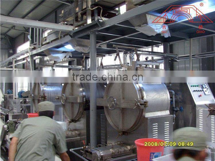 Guaqiao Brand Snow Rice Cracker Making Machineryis developped on the basic of advanced foreigh technology, After decades of manufacturing & development , Now all the machines have been improved in our rich experience of practical production. It is also designed according to the feedbacks from domestic and overseas customers. Low cost, low energy-exhausting, small dimension, high profit, and easy-repairing are its best features. It is composed of rice soaking platform and rice soaking buckets, grinding machine, steam cooking machine, extruders, cooling water channel, forming machine, the first drying machine, the second drying machine, the bulking machine, the oil sprayer, seasoning machine, sugar sprayer, the third drying machine, product conveyor and other assistant machines.
